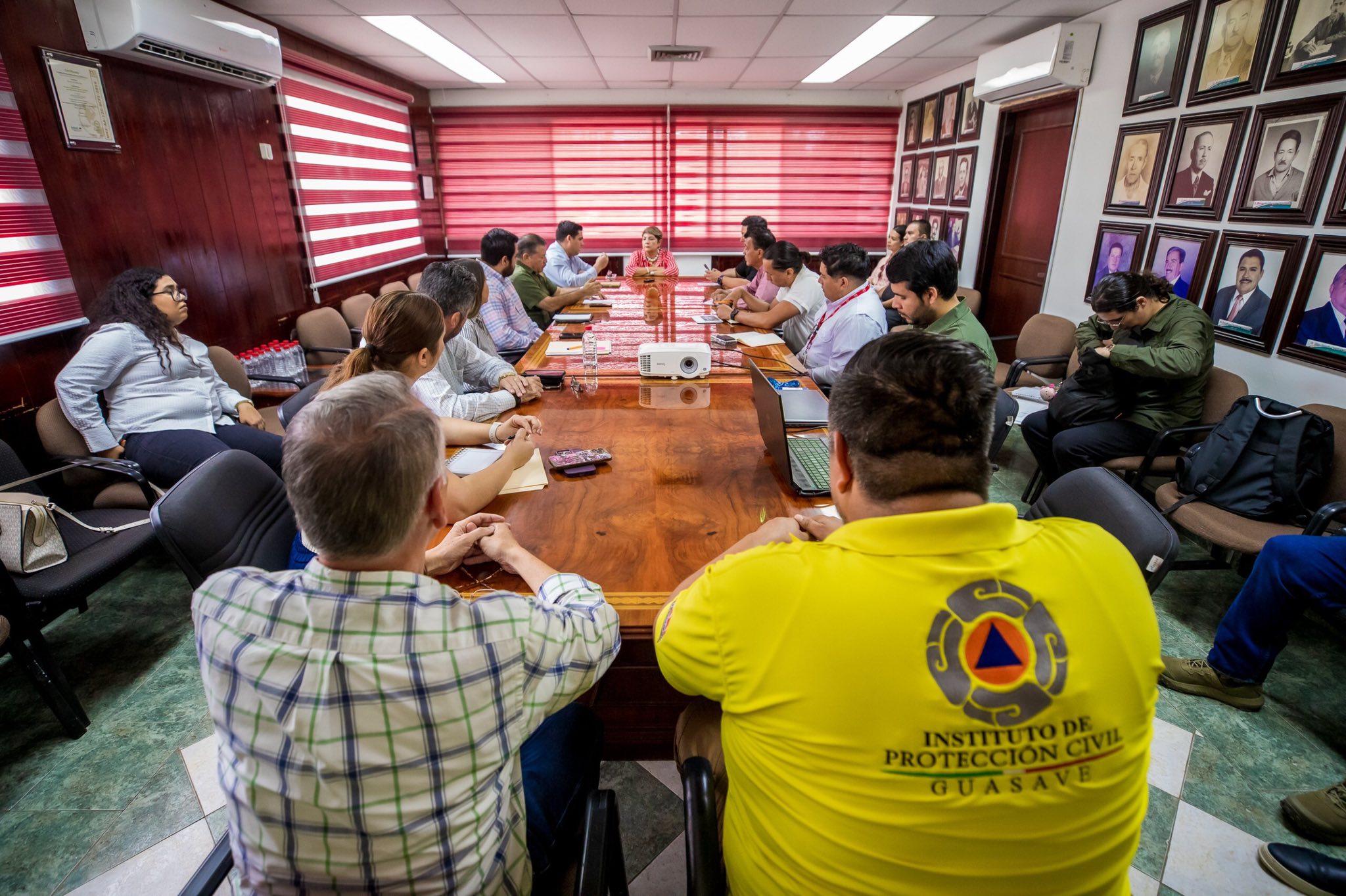 Durante la reunión también participaron el secretario del Ayuntamiento, Feliciano Valle Sandoval; Manuel Acosta, director de Estudios y Proyectos de Obras Públicas del Estado; Víctor Mendoza Castillo, subgerente de INFONAVIT Noroeste; Rael Rivera, director general de Obras Públicas; Alejandra Ibón Valdés, gerenta de Jumapag; Macario Gaxiola, director de Protección Civil; y David Rojas Escárrega, director del IMPLAN.