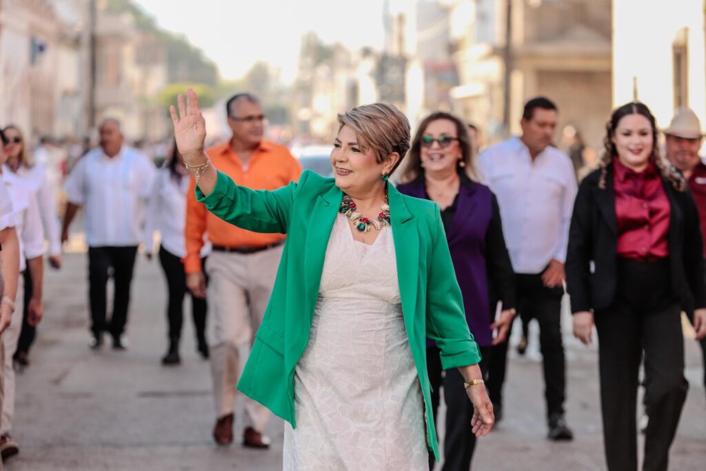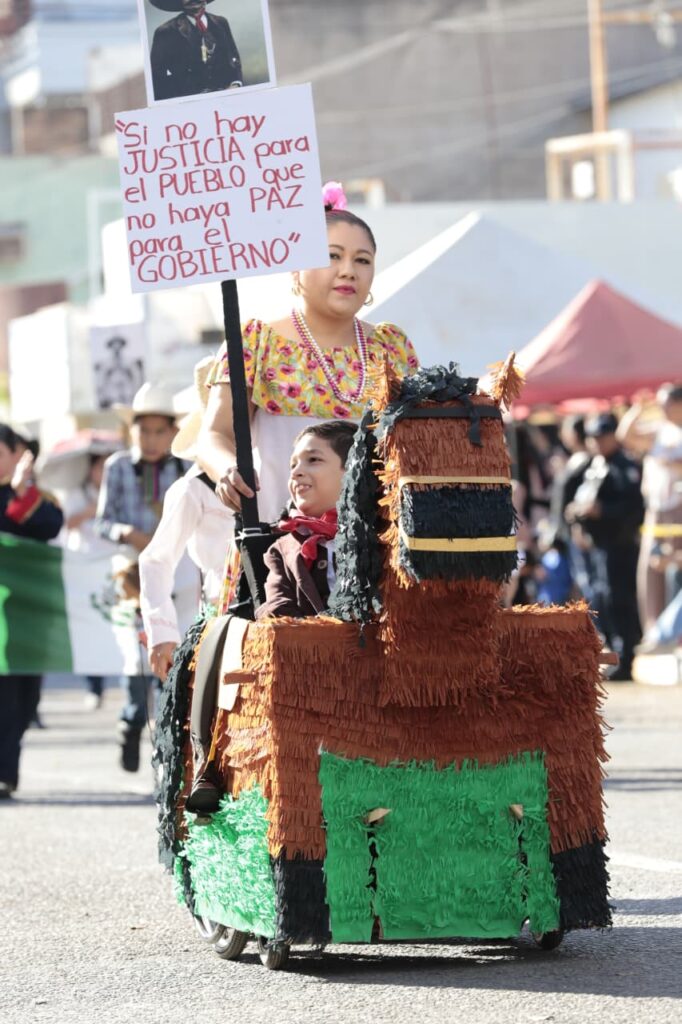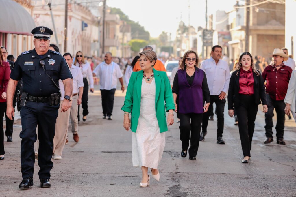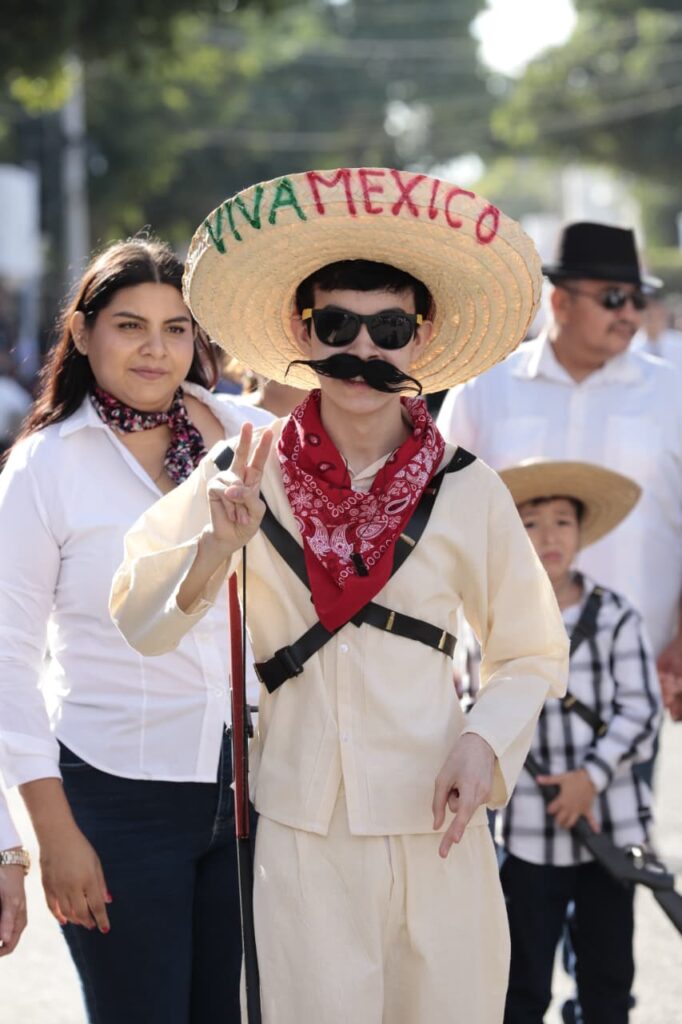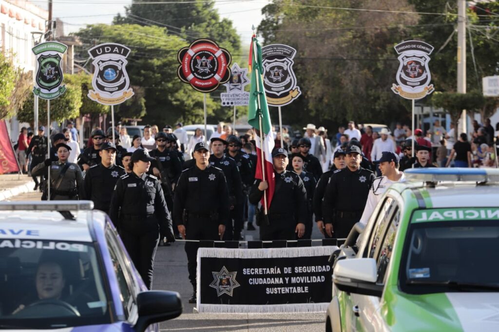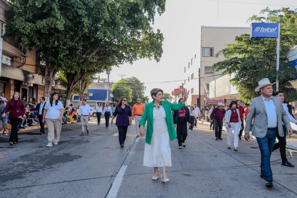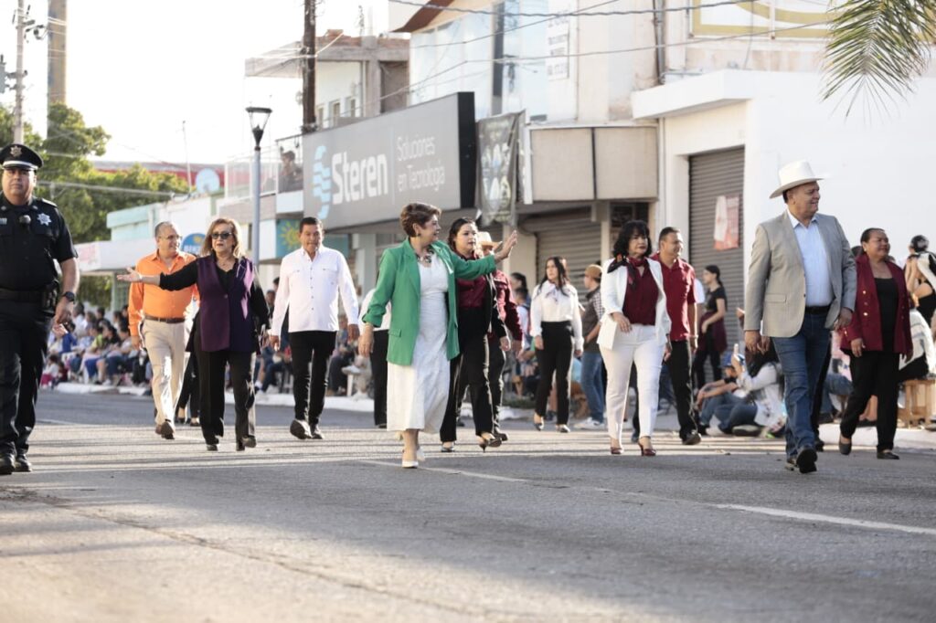 El acto inició en la plazuela Miguel Hidalgo y avanzó hasta la avenida Carrasco, donde la presidenta municipal, Dra. Cecilia Ramírez Montoya, encabezó el primer bloque y reconoció la participación de 33 contingentes integrados por escuelas, grupos deportivos, cuerpos de auxilio y organizaciones civiles.