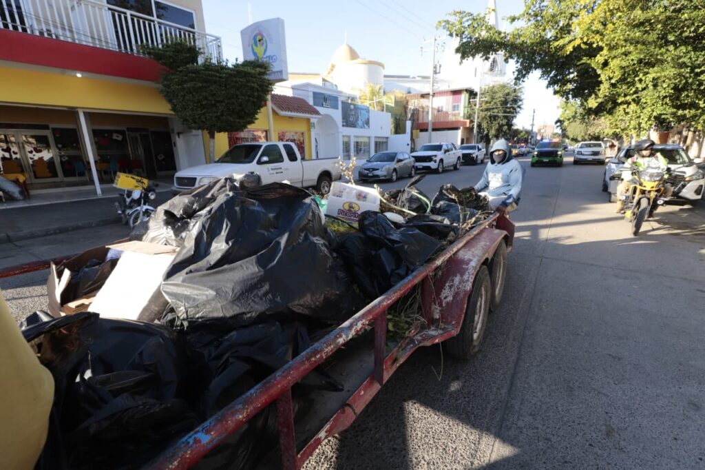 Guasave, Sinaloa.- El Ayuntamiento de Guasave continúa con las Jornadas de Limpieza en el primer cuadro de la ciudad, donde este fin de semana se recolectaron más de tres toneladas de basura en la calle Emiliano Zapata, en el tramo del bulevar Central al Malecón María del Rosario Espinoza.