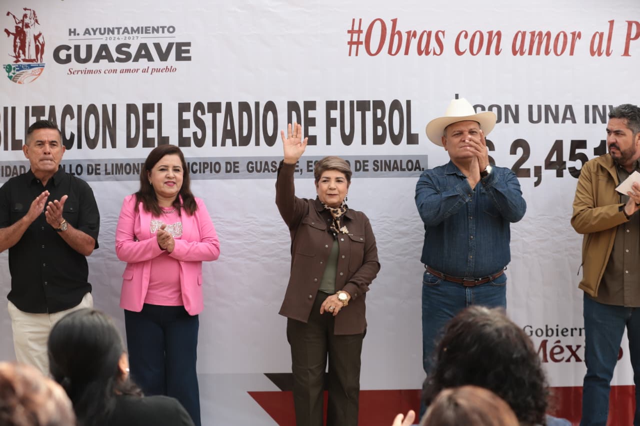 Guasave, Sinaloa.- Más de 100 niñas y niños que integran ocho equipos del club GalloFut contarán con un estadio de futbol renovado en la comunidad de El Gallo de Limones, sindicatura de Benito Juárez, gracias a una inversión de 2 millones 451 mil 067 pesos provenientes del predial rústico.