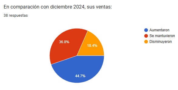 En cuanto a la afluencia de clientes, los resultados muestran un comportamiento mixto, pero con señales alentadoras. El 34.2 por ciento de los encuestados indicó que la afluencia fue mayor, y un 28.9 por ciento consideró que se mantuvo igual que en diciembre de 2024. En contraste, el 26.3 por ciento reportó una menor afluencia y un porcentaje reducido señaló una caída mucho menor, lo que confirma un escenario de estabilidad general con áreas de oportunidad.