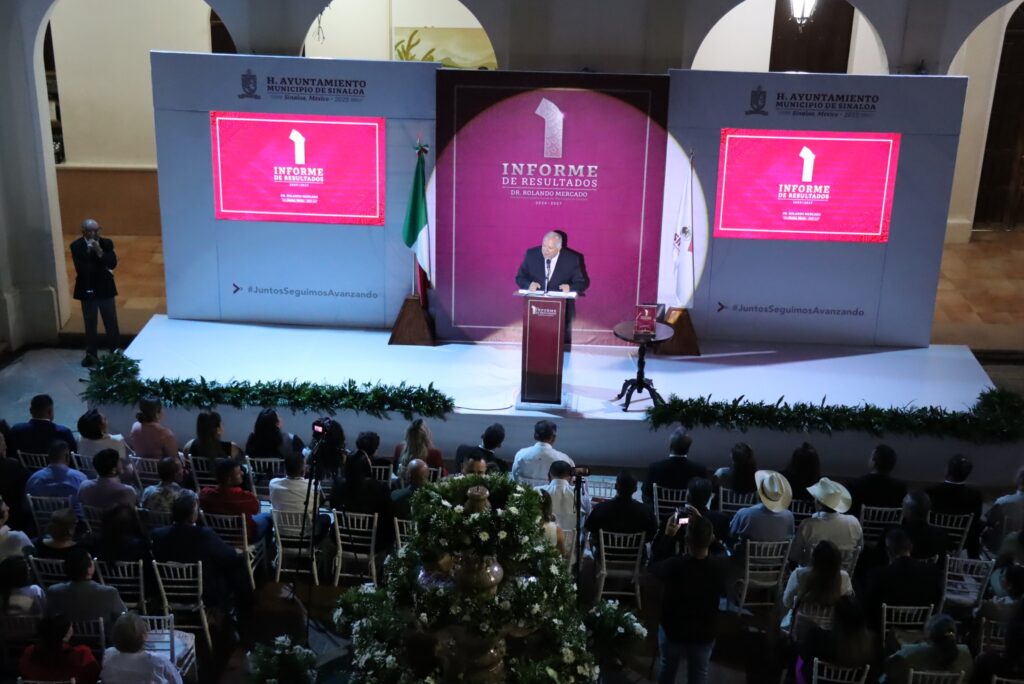 Sinaloa de Leyva, Sinaloa. – Con un mensaje de unidad, compromiso y resultados, el alcalde Rolando Mercado presentó su Primer Informe de Resultados al frente del Ayuntamiento de Sinaloa, donde destacó la realización de más de 150 obras y acciones con una inversión superior a 130 millones de pesos, que han beneficiado a miles de familias en las 740 comunidades del municipio.